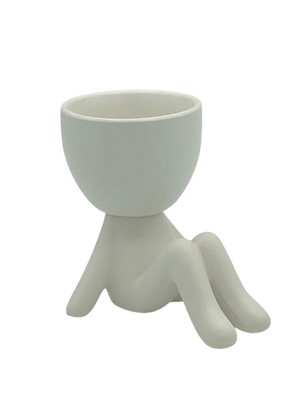 Laid-back Ceramic Egghead Planter - White