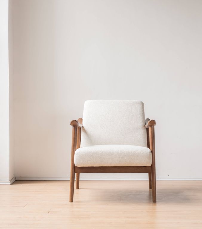 A sophisticated and charismatic statement chair, expertly crafted from basket-weave fabric and North American ash, with Walnut finish.