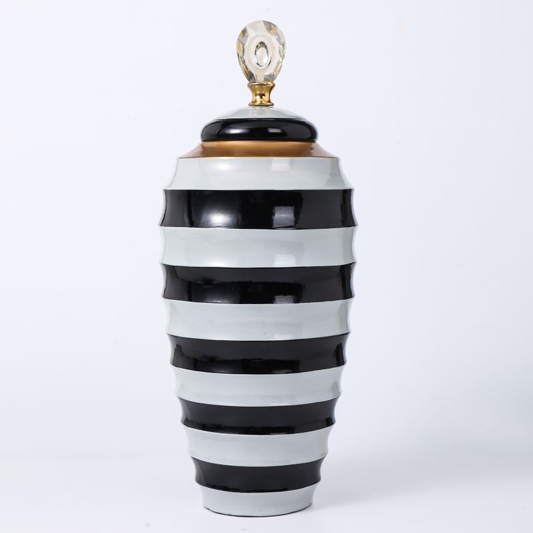 Crafted from ceramic materials, this lidded vase, with a flattering shape and luxurious glaze, make it an opulent choice for any home or office.