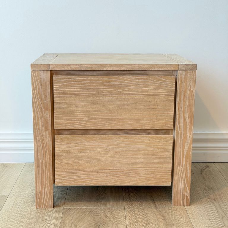 The Soren 2 Drawer Bedside Cabinet offers a clean, simple look with a natural timber finish that suits a wide range of interiors. Crafted from rubberwood, its light, balanced design makes it easy to place and style—ideal for bedrooms, guest rooms, or property styling where flexibility matters.