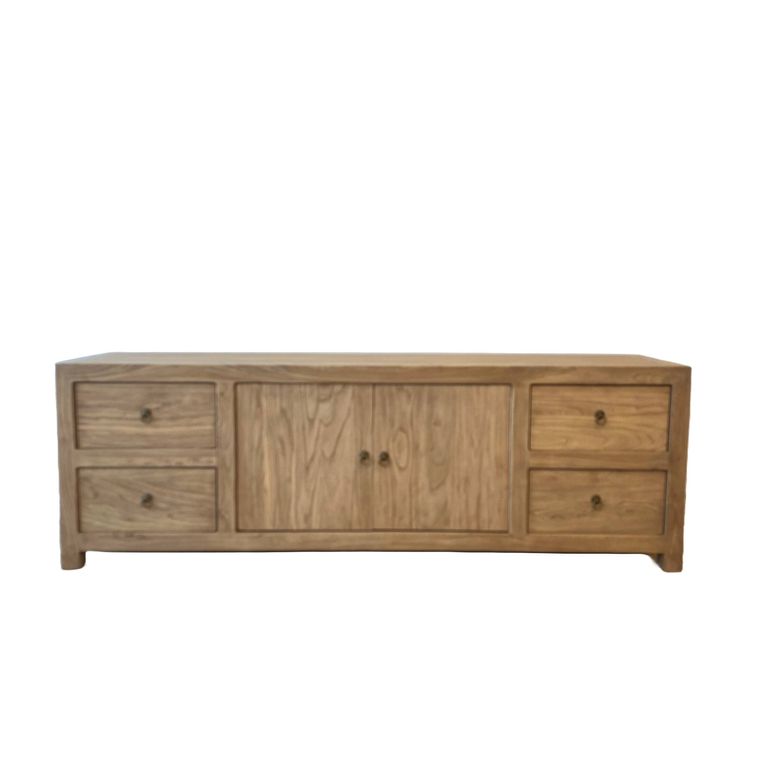Inspired by European antiques, our solid wood console is made from reclaimed elm, is hand finished for a farmhouse look. With generous internal storage, it has four drawers and one large removable shelf to hold your electronics, books, cushions, throws, or any other items you want to store out of sight.